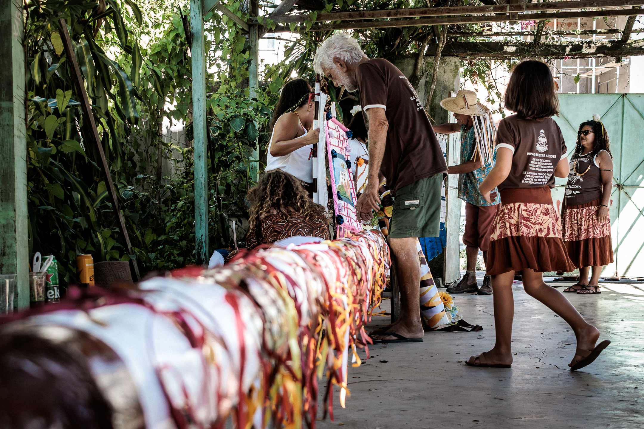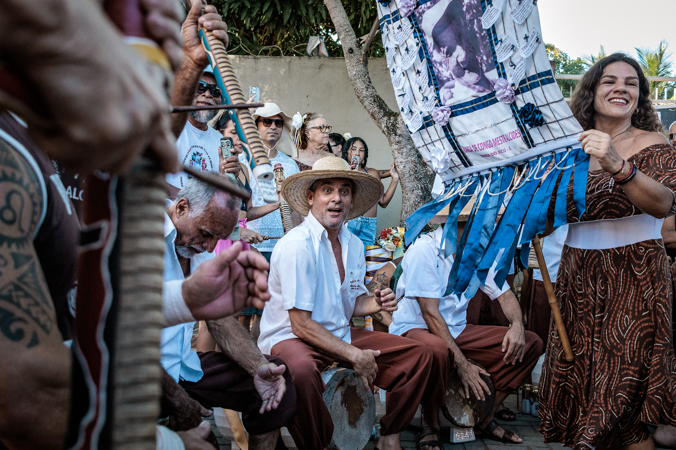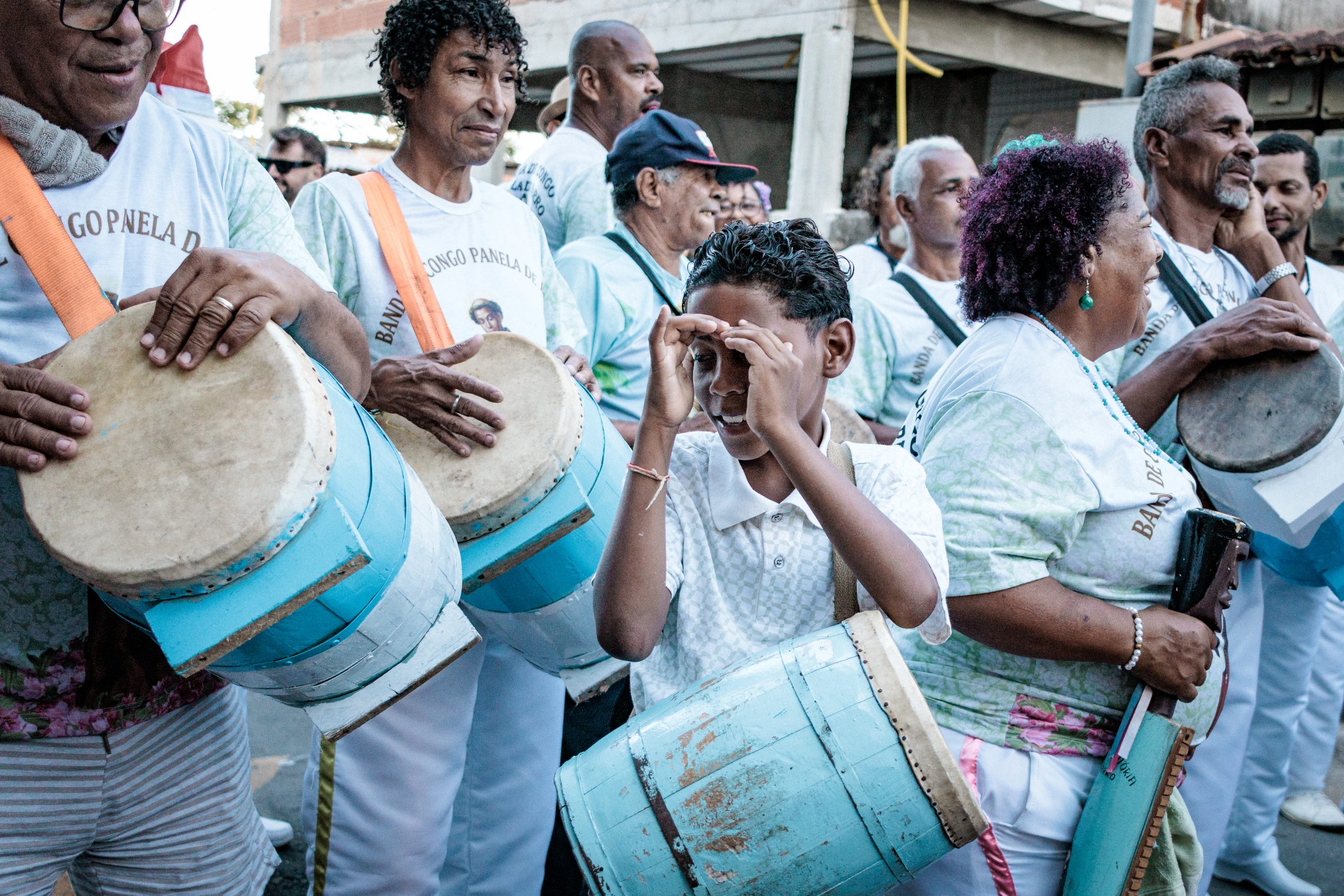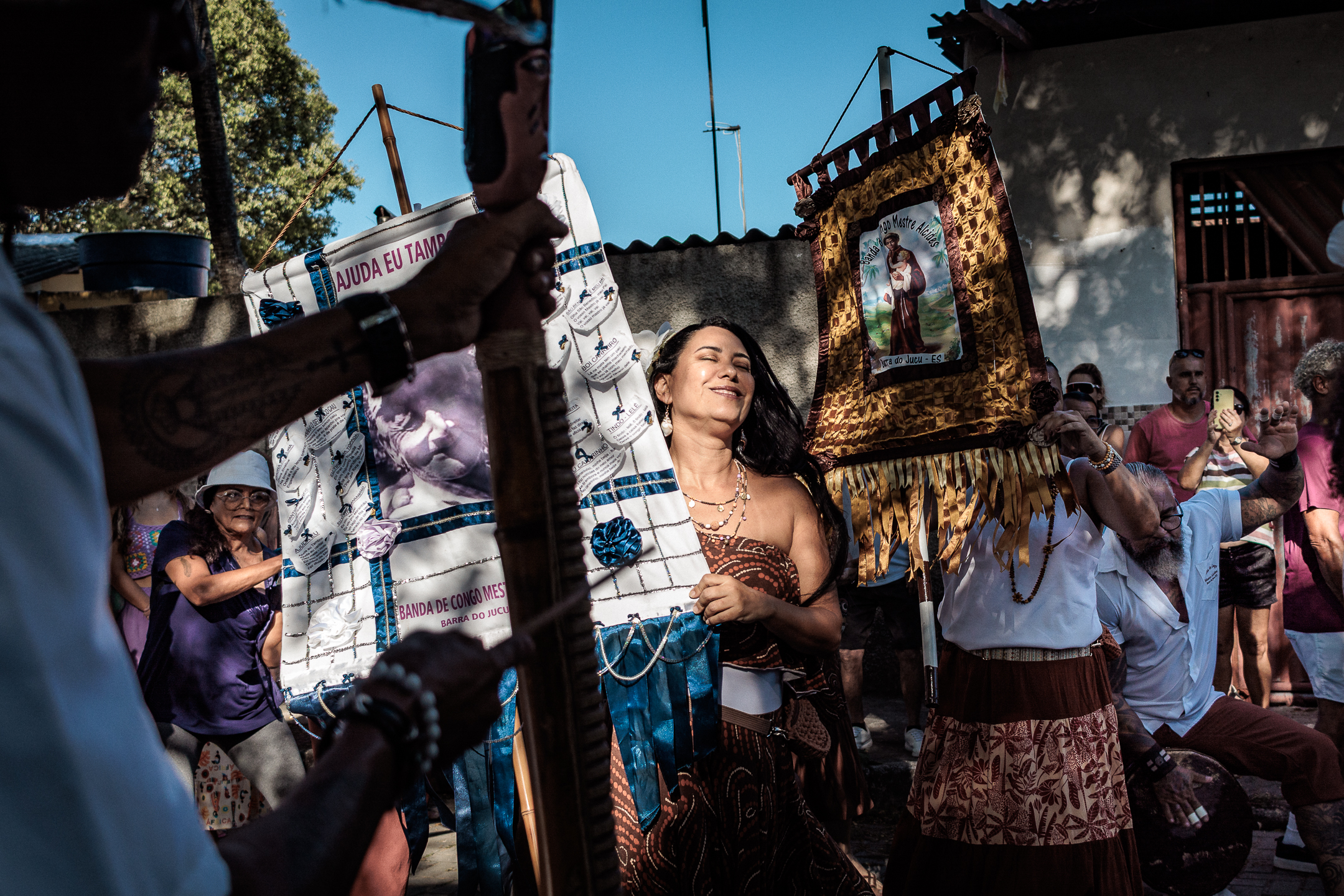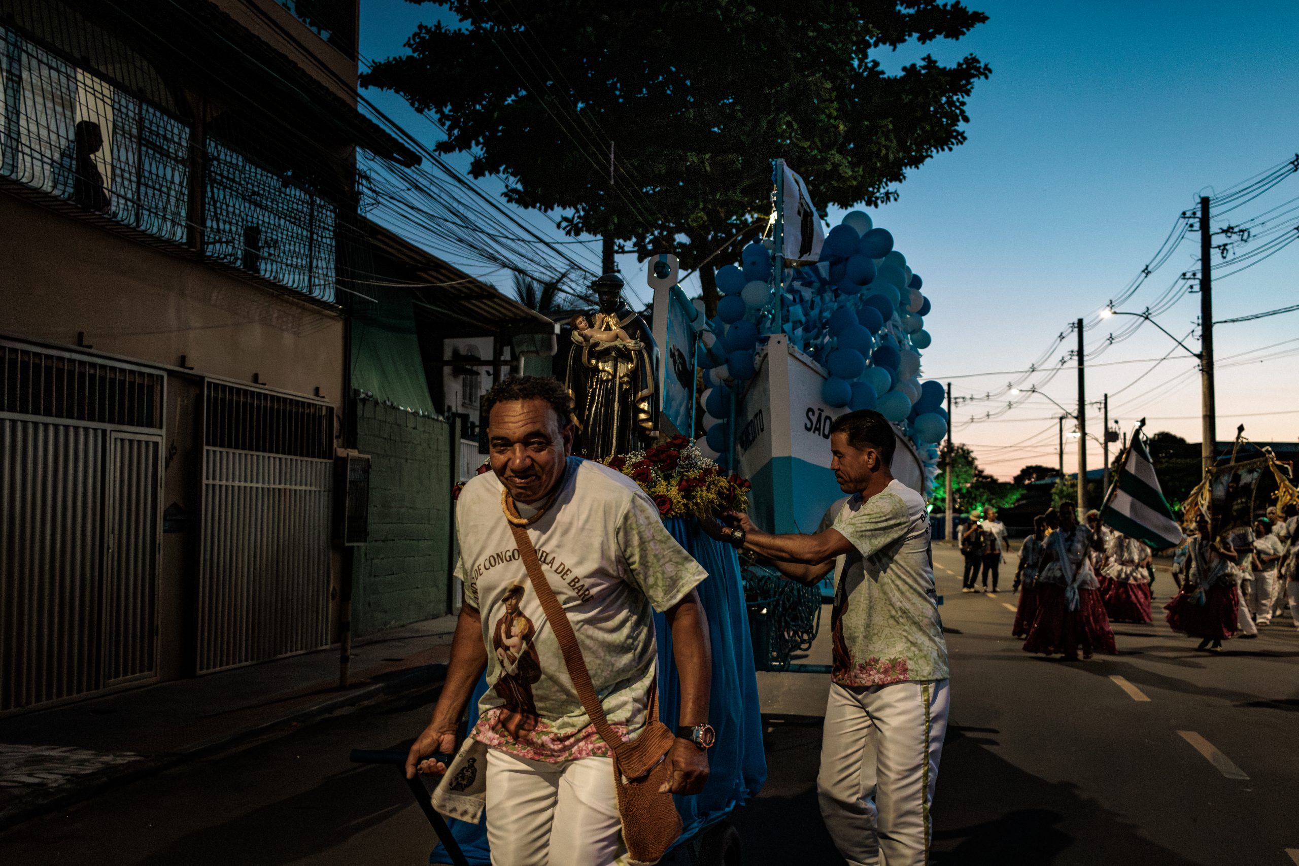A tradição, que remonta ao século XVIII, é marcada por vestimentas brancas adornadas com fitas coloridas e chapéus ricamente decorados com flores de papel. Os participantes, chamados de “Congos”, utilizam instrumentos de percussão como pandeiros e o gunga (chocalho de latão preso aos tornozelos), que dita o ritmo da dança. O ápice ocorre com as “loas”, versos improvisados ou ancestrais que misturam devoção religiosa, sátira política e crônicas do cotidiano, mantendo viva a memória e a identidade da cultura negra no Espírito Santo.