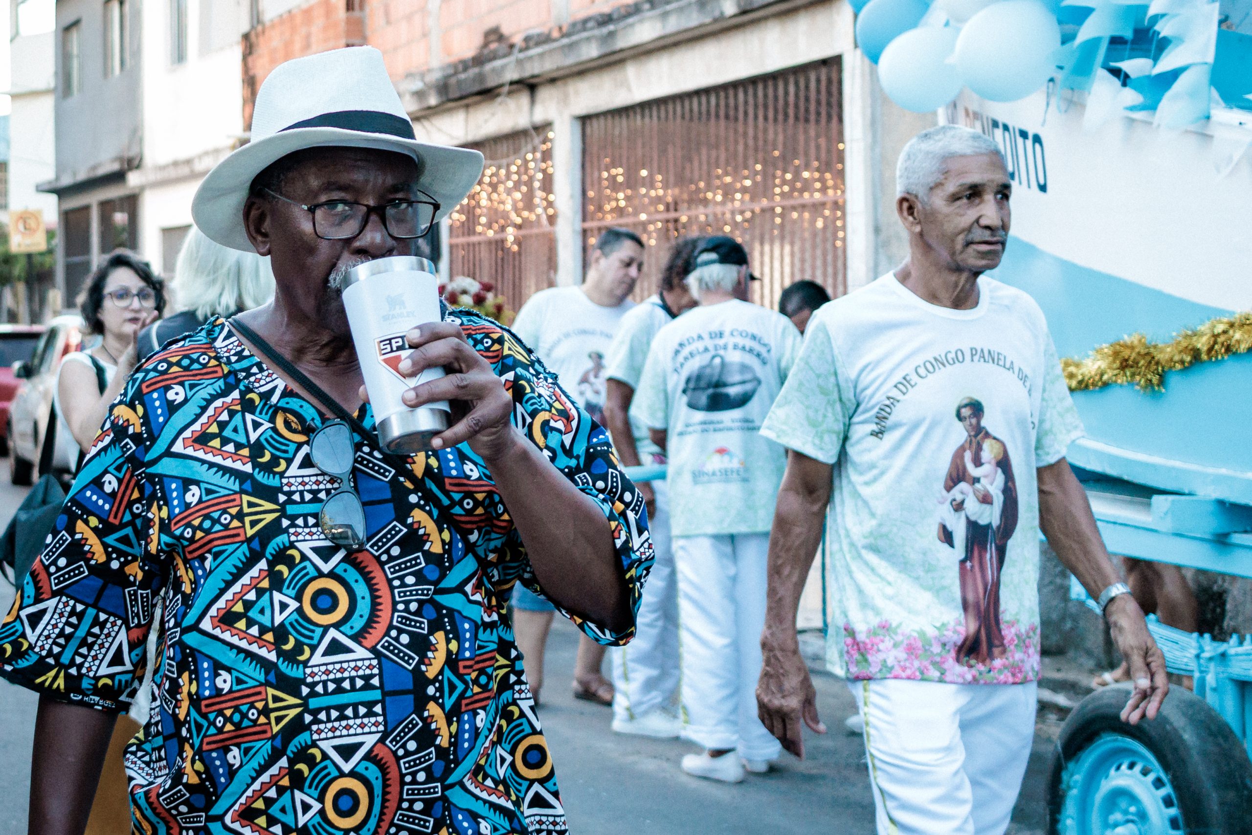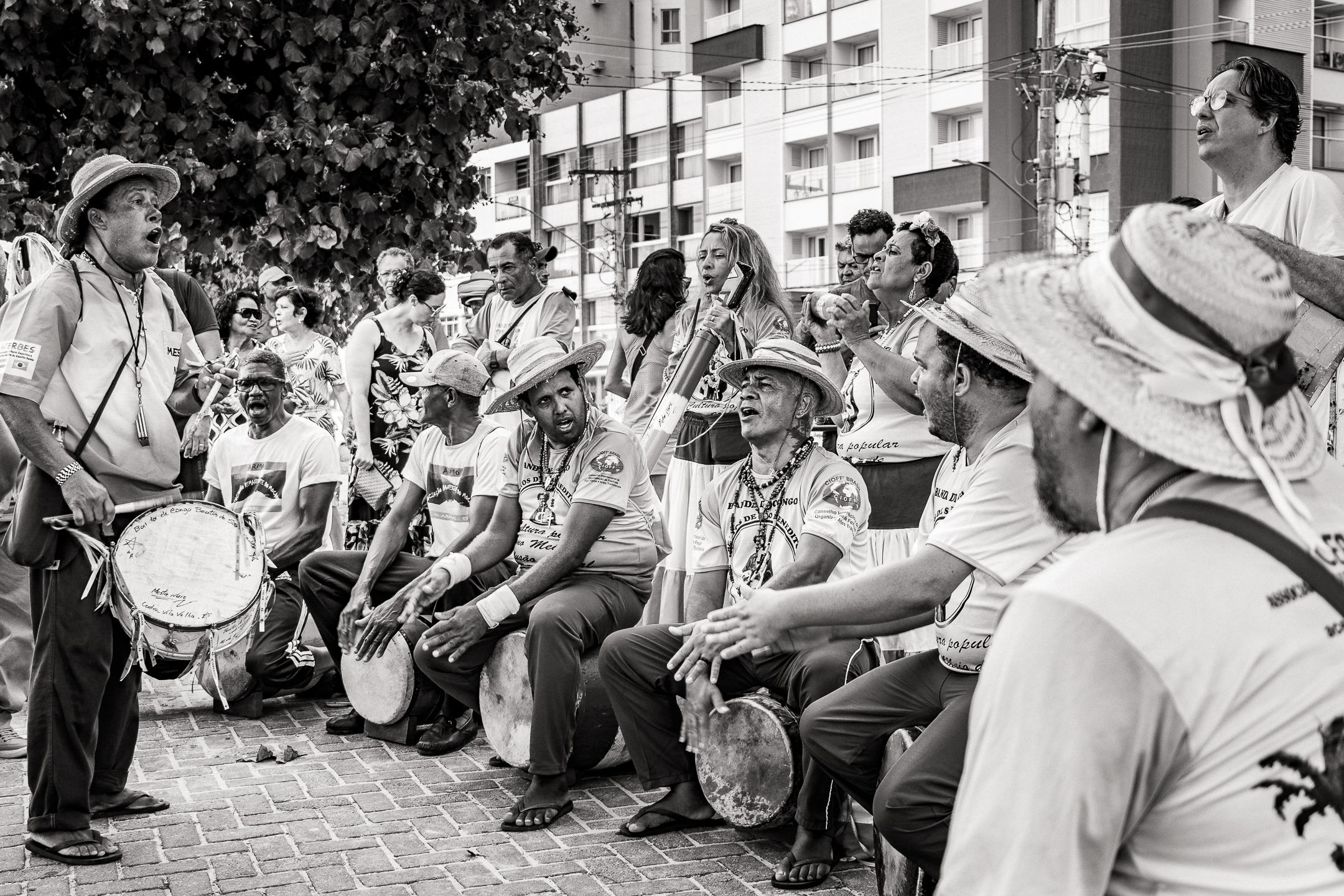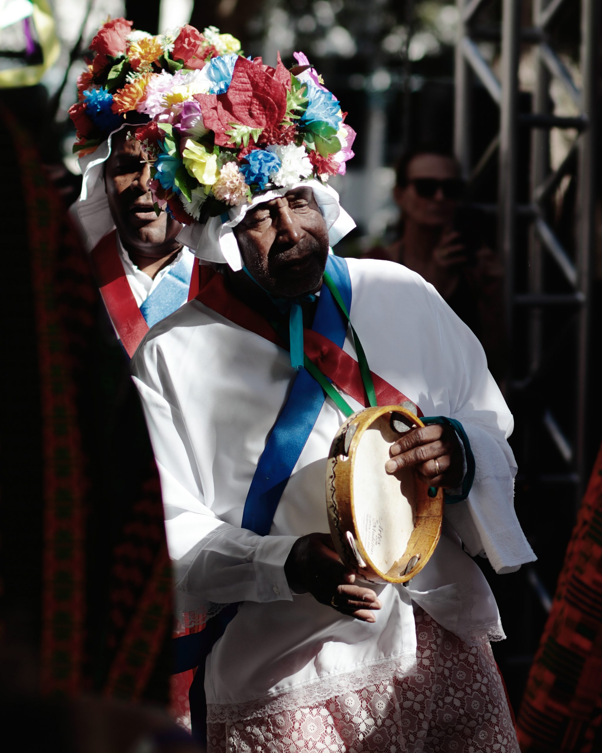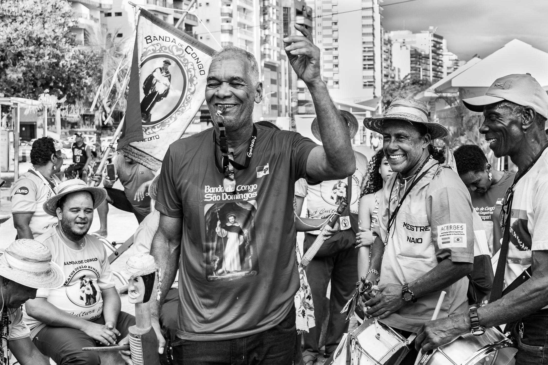 A tradição, que remonta ao século XVIII, é marcada por vestimentas brancas adornadas com fitas coloridas e chapéus ricamente decorados com flores de papel. Os participantes, chamados de “Congos”, utilizam instrumentos de percussão como pandeiros e o gunga (chocalho de latão preso aos tornozelos), que dita o ritmo da dança. O ápice ocorre com as “loas”, versos improvisados ou ancestrais que misturam devoção religiosa, sátira política e crônicas do cotidiano, mantendo viva a memória e a identidade da cultura negra no Espírito Santo.