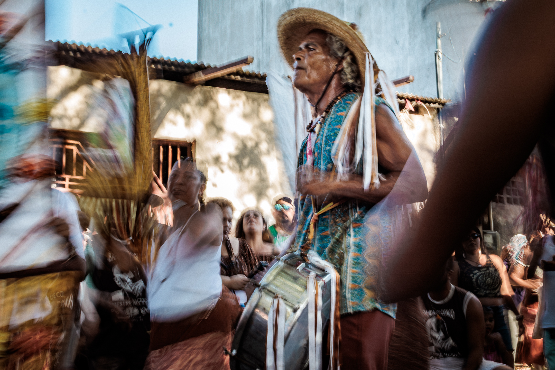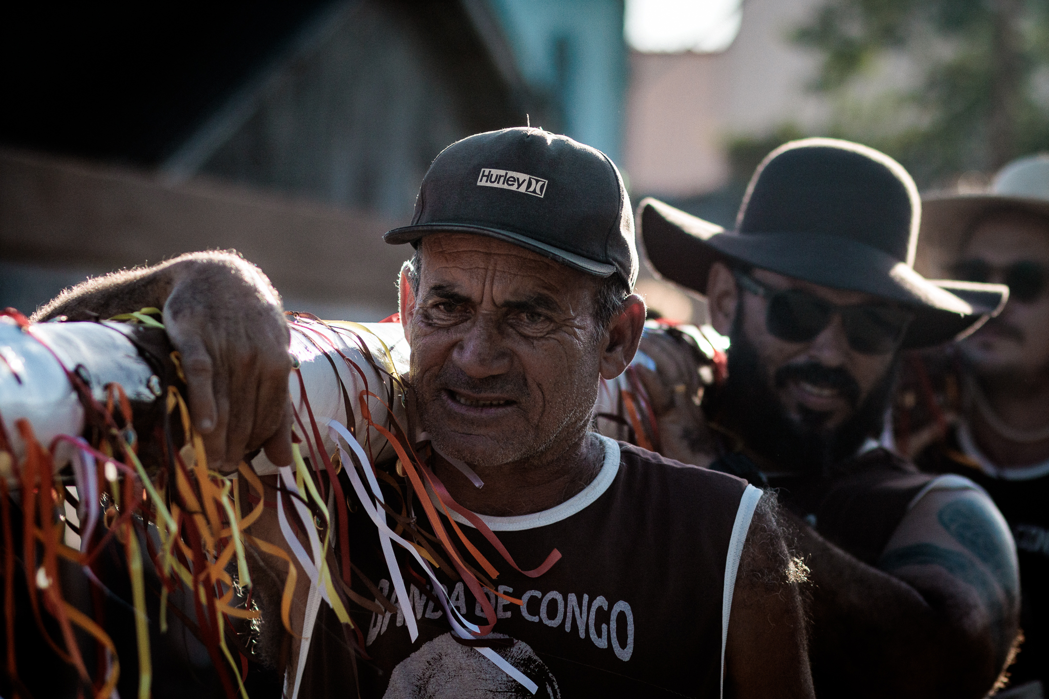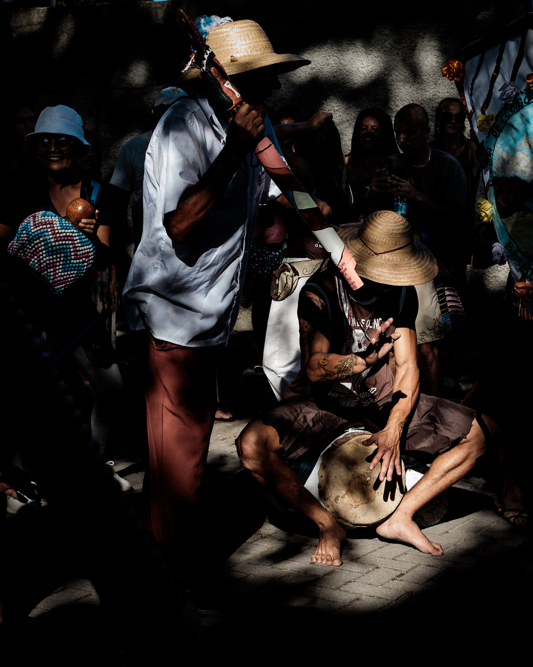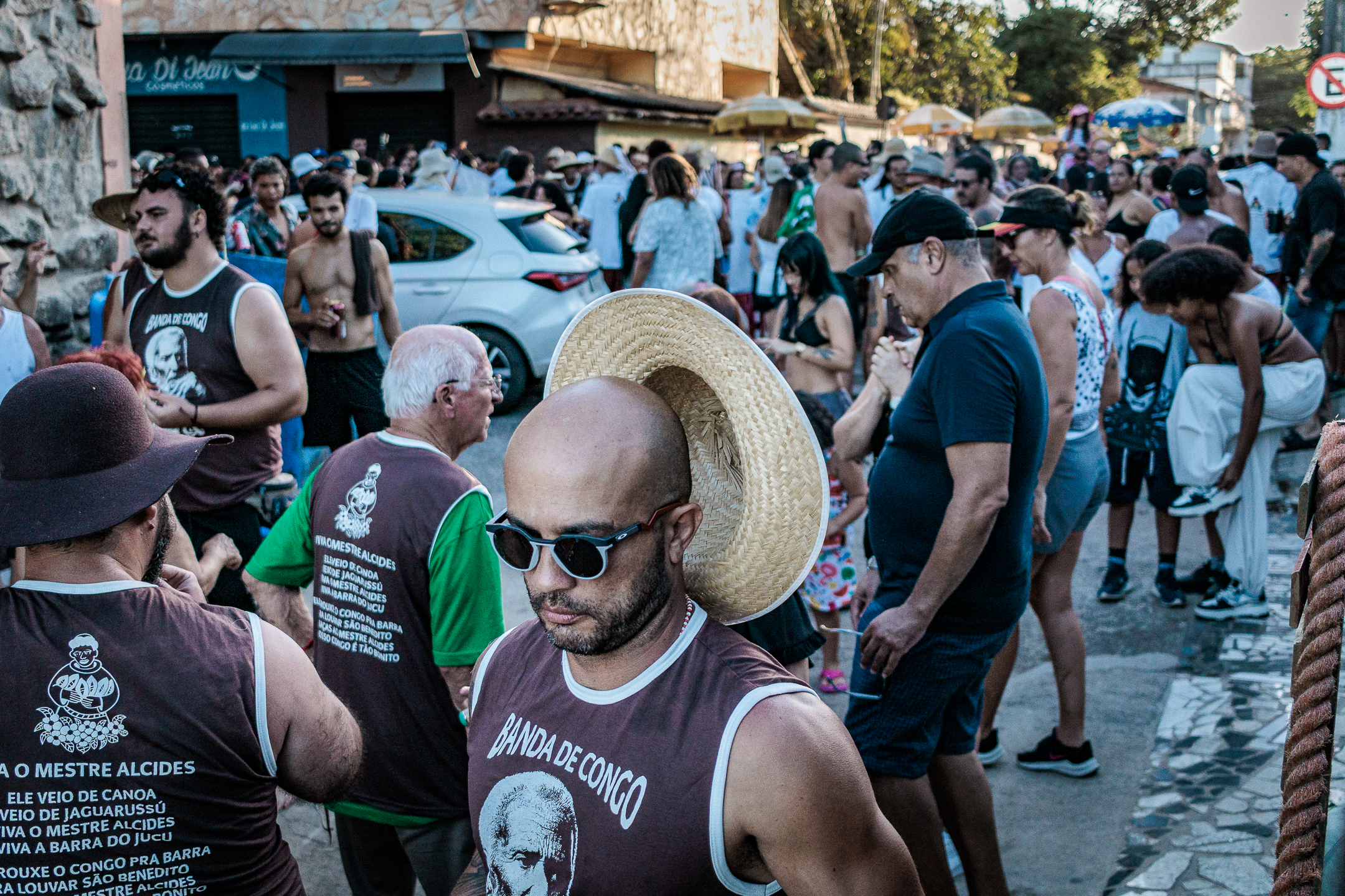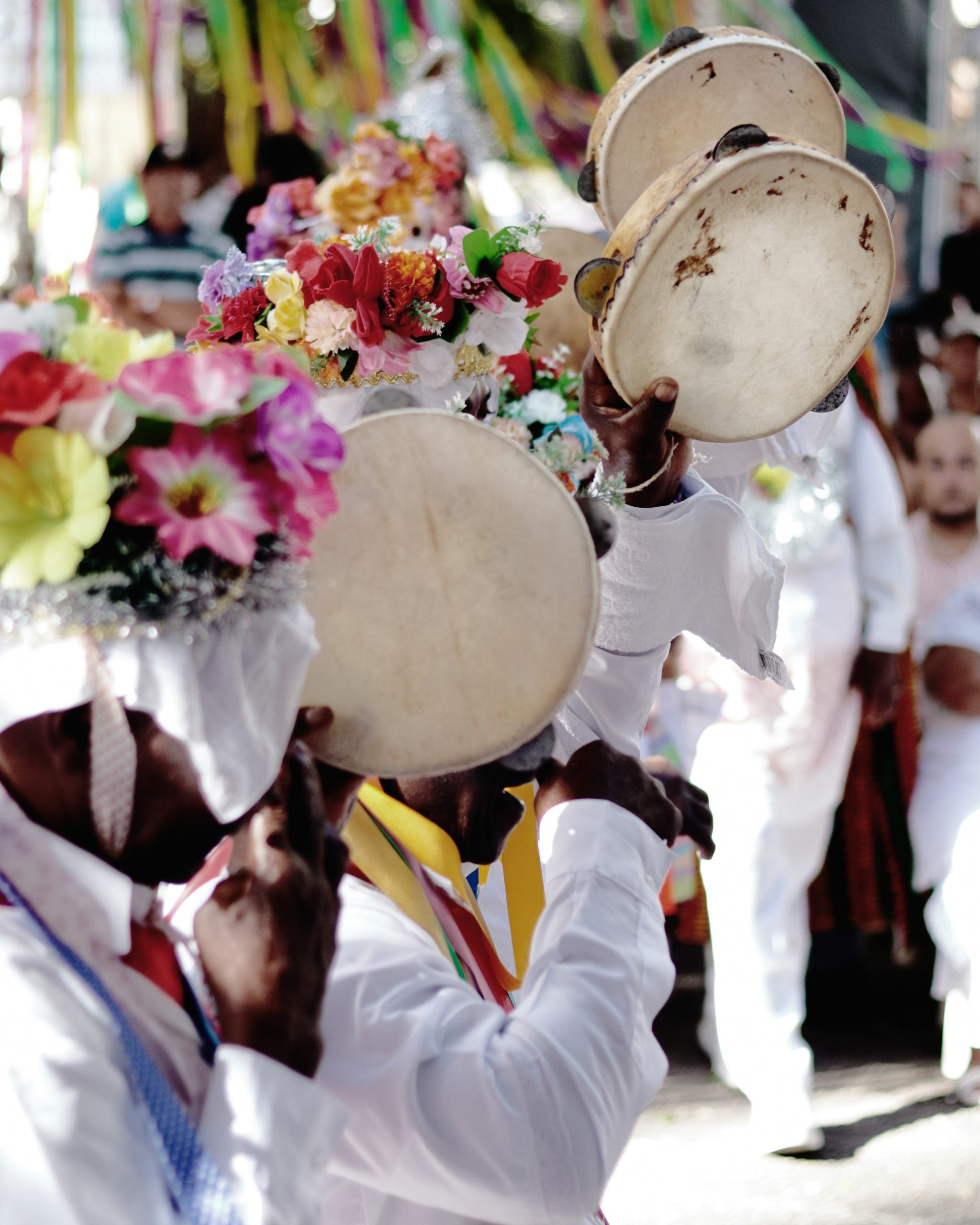 A tradição, que remonta ao século XVIII, é marcada por vestimentas brancas adornadas com fitas coloridas e chapéus ricamente decorados com flores de papel. Os participantes, chamados de “Congos”, utilizam instrumentos de percussão como pandeiros e o gunga (chocalho de latão preso aos tornozelos), que dita o ritmo da dança. O ápice ocorre com as “loas”, versos improvisados ou ancestrais que misturam devoção religiosa, sátira política e crônicas do cotidiano, mantendo viva a memória e a identidade da cultura negra no Espírito Santo.