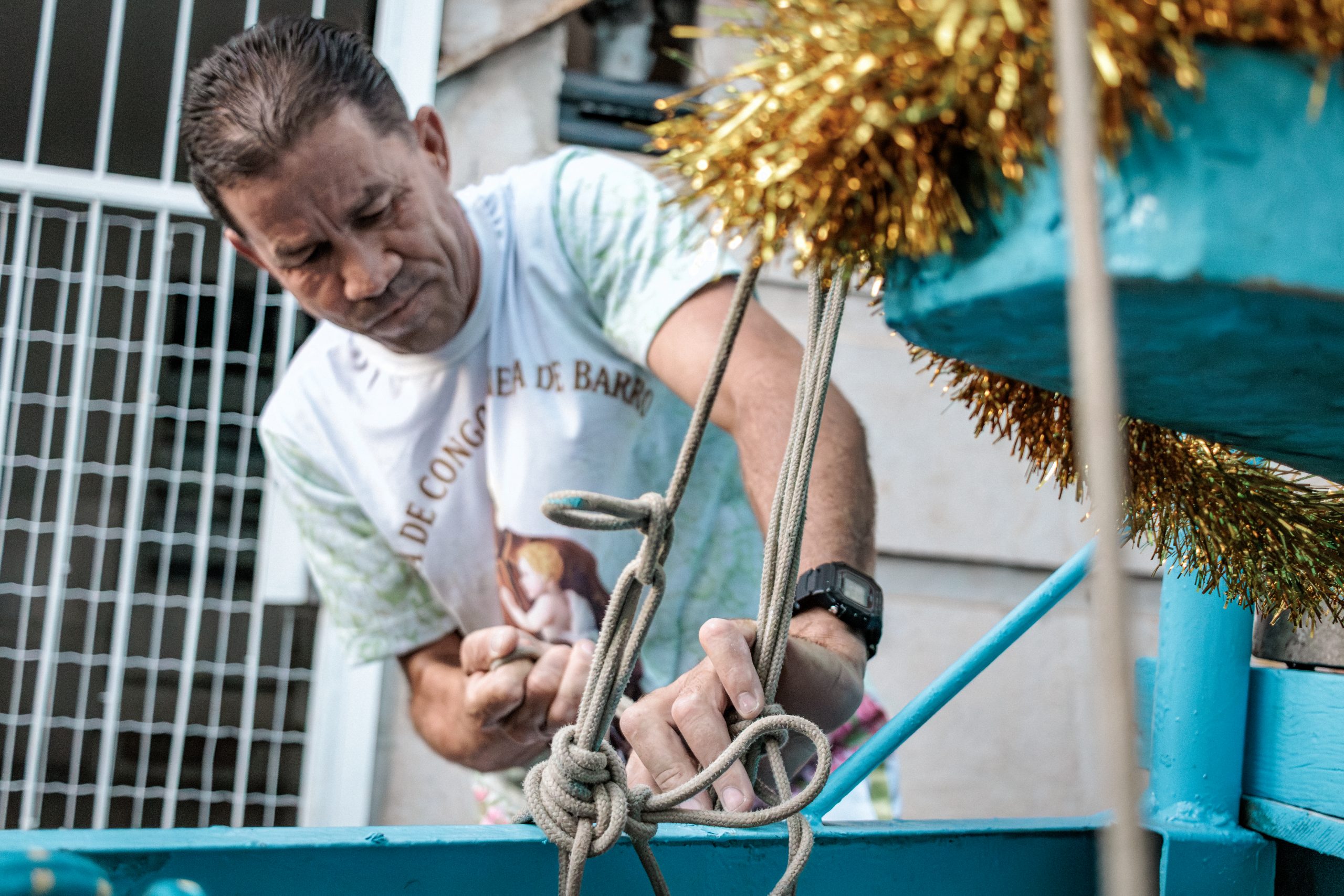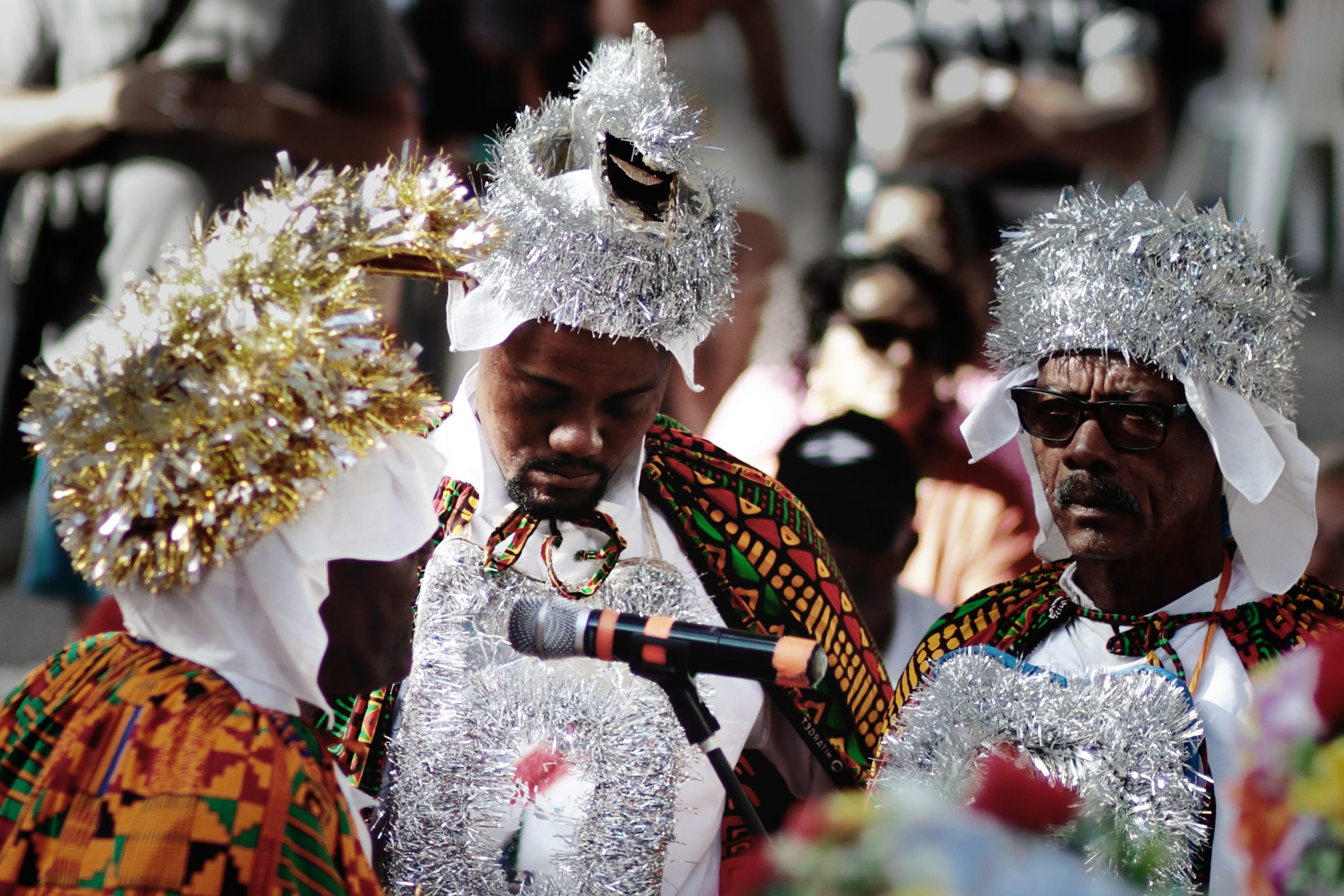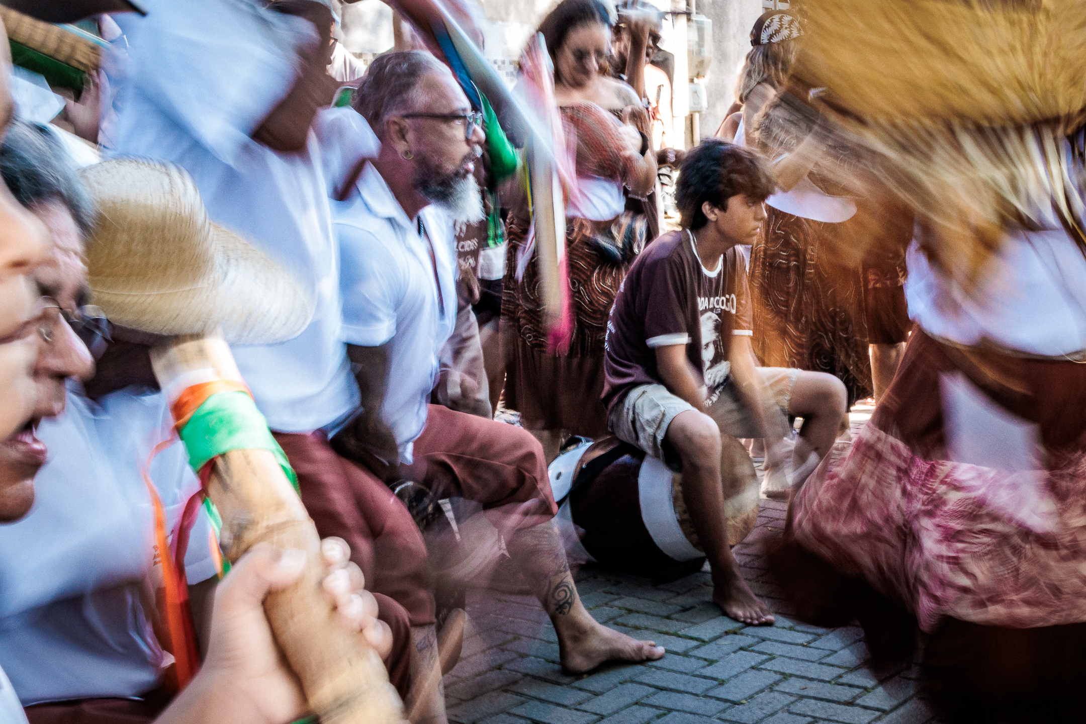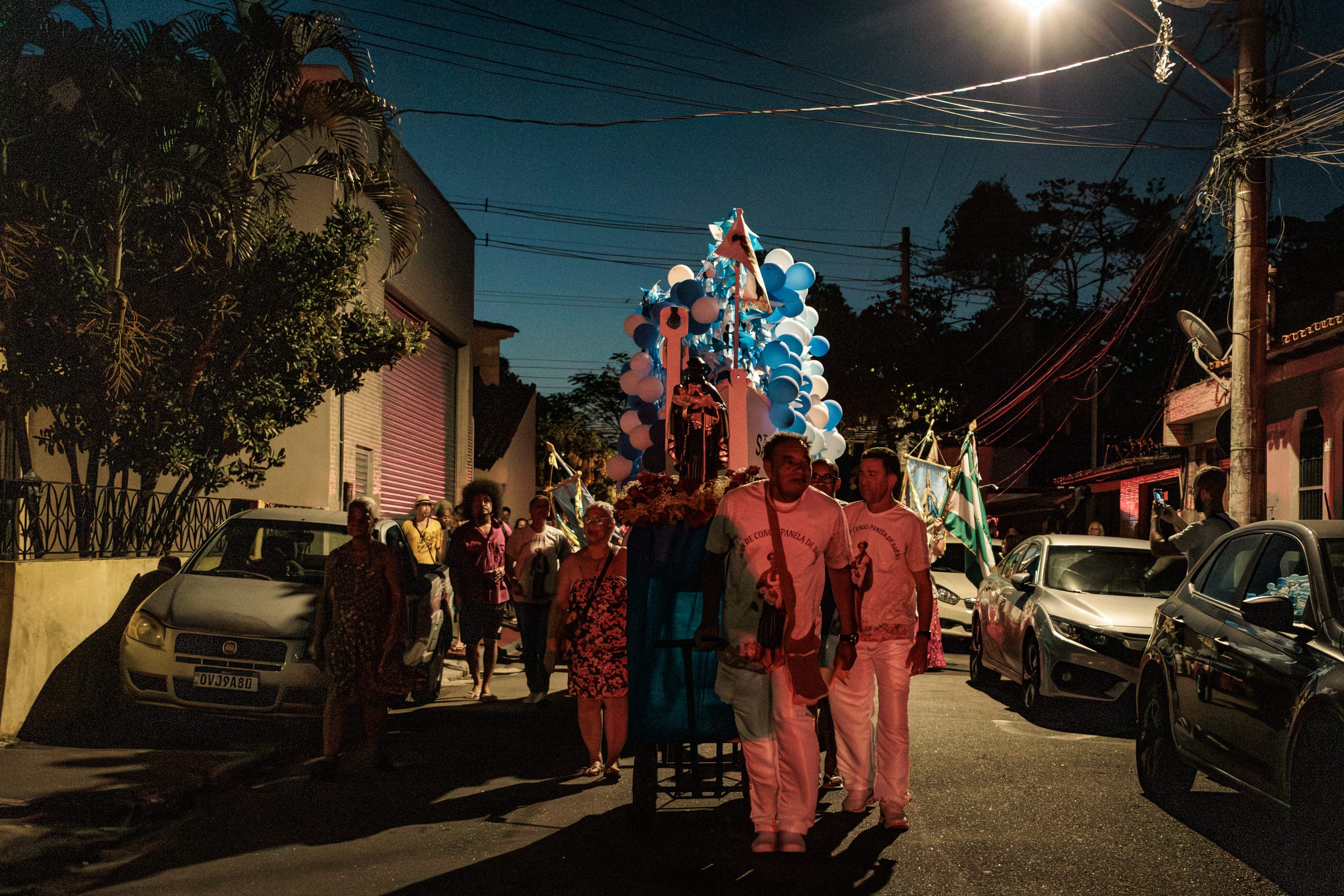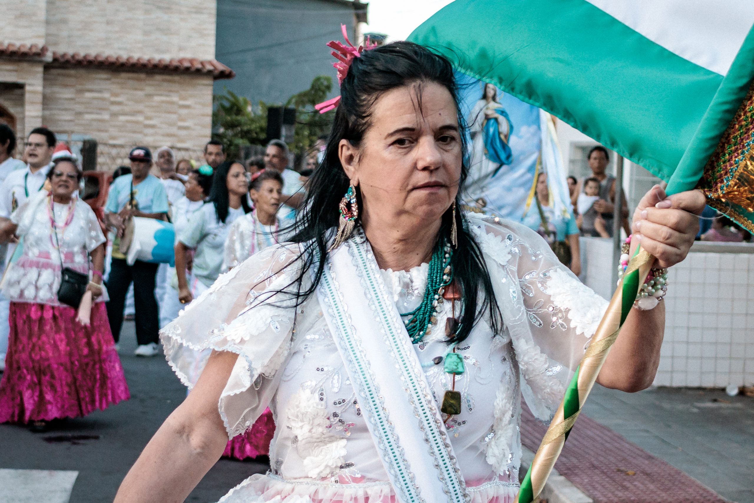 A tradição, que remonta ao século XVIII, é marcada por vestimentas brancas adornadas com fitas coloridas e chapéus ricamente decorados com flores de papel. Os participantes, chamados de “Congos”, utilizam instrumentos de percussão como pandeiros e o gunga (chocalho de latão preso aos tornozelos), que dita o ritmo da dança. O ápice ocorre com as “loas”, versos improvisados ou ancestrais que misturam devoção religiosa, sátira política e crônicas do cotidiano, mantendo viva a memória e a identidade da cultura negra no Espírito Santo.