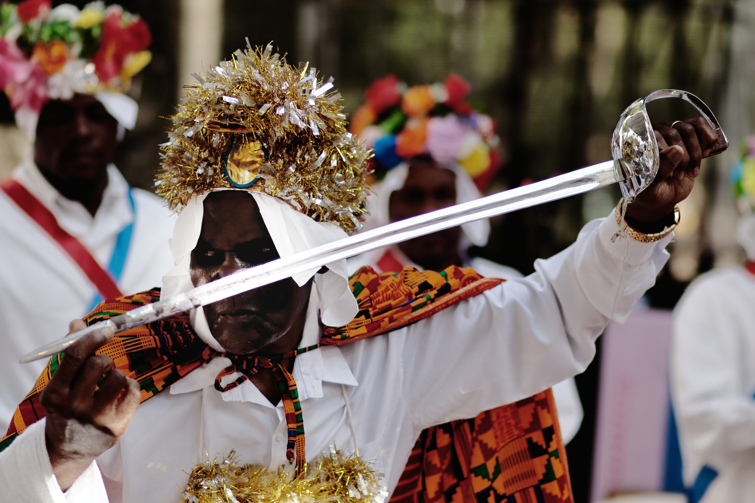 O Ticumbi é uma das manifestações mais singulares do folclore capixaba, celebrada principalmente em Conceição da Barra. Diferente do Congo, ele é um drama coreografado e cantado, que encena a disputa entre dois reis africanos — o Rei de Bamba e o Rei de Congo — pela honra de realizar a festa de São Benedito.